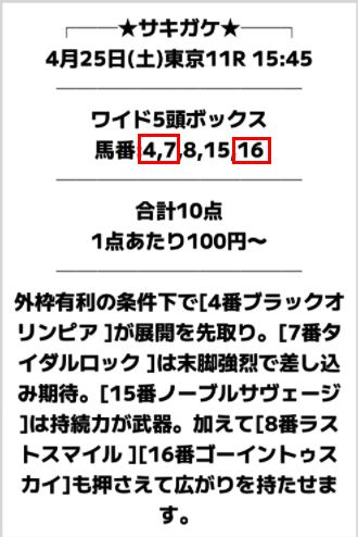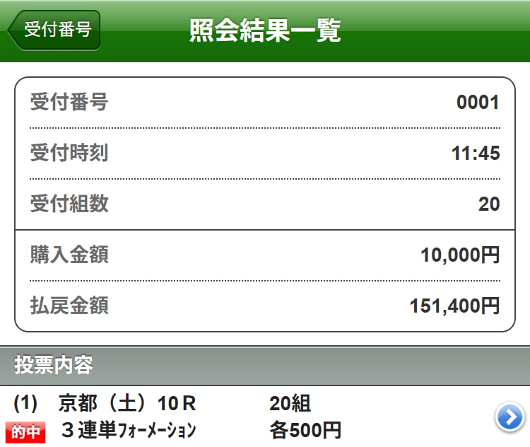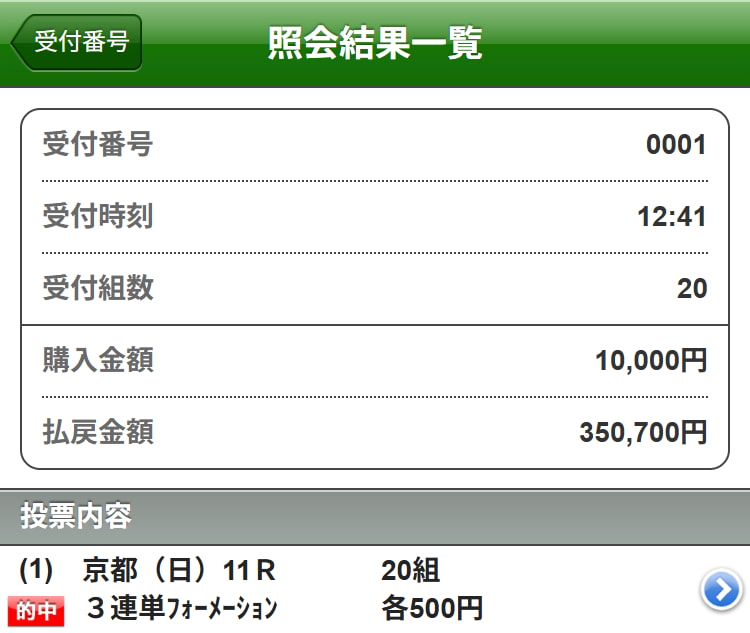 | 04/19日(日)【中山11R】皐月賞 48万1,320円獲得!! |