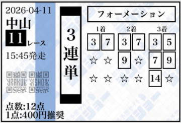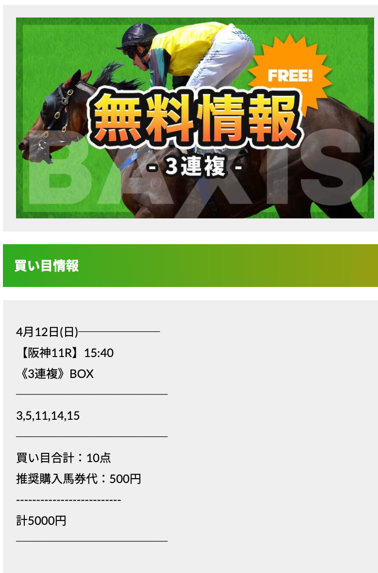 | 03/28日(土)【阪神11R】毎日杯(G3) 4万2,000円獲得!! |