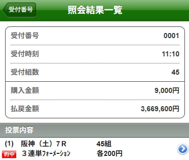 | 03/29日(土)【中京8R】大寒桜賞 69万7,440円獲得!! |