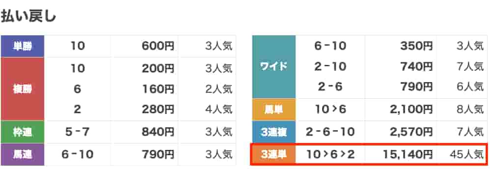 新潟6Rは「2-12-4」で116万円超えの払い戻し。