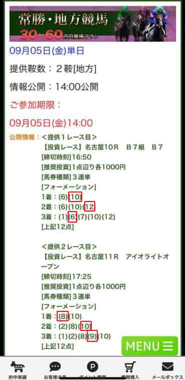 09/05日(金)名古屋1R/2R [常勝・地方競馬]