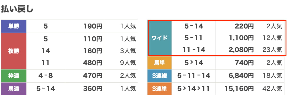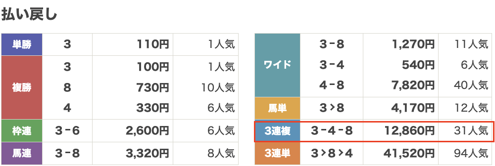 ワイドBOXで3点パーフェクト的中!1万投資で3.4万の払い戻し