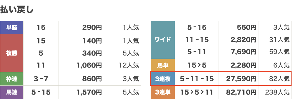 500円ずつの10点買い(計5,000円)が、払い戻し15,520円×5=77,600円に化けました。無料情報でこれだけの配当を取れるなら、試さない理由がないと思います。