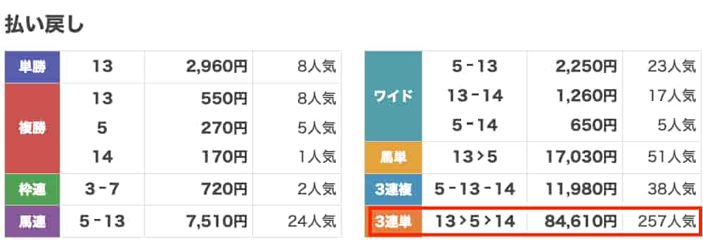 中京8R3連単8-6-590,990円✖️1点500円=454950