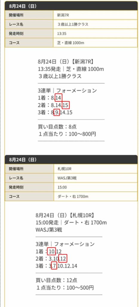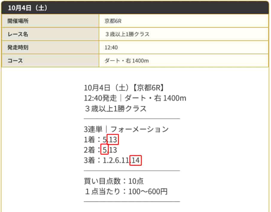買い目は6点だけで無駄がなく、ほんとに助かりました。