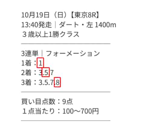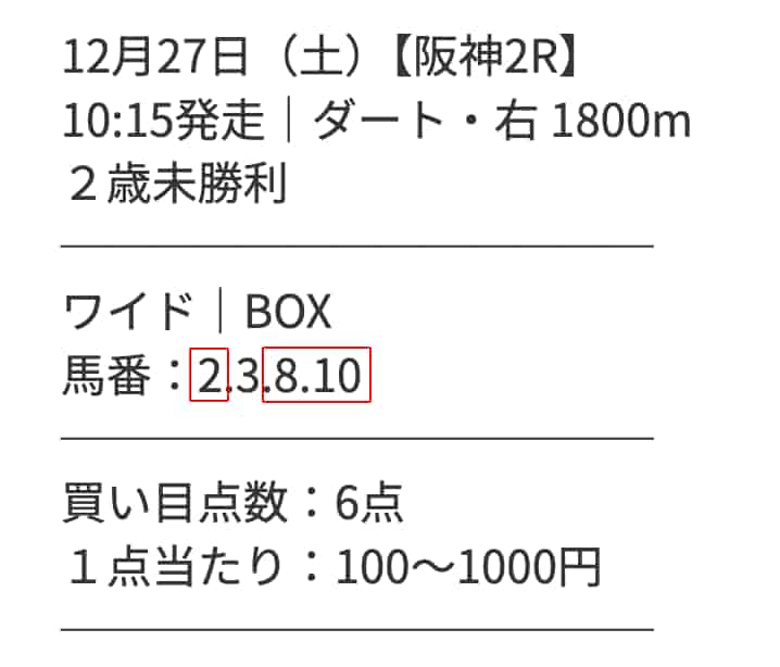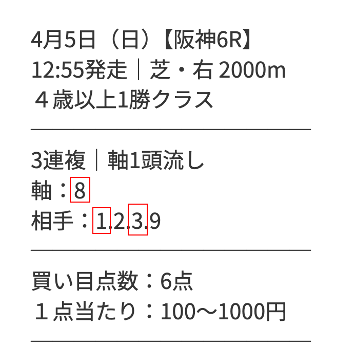 買い目は6点だけで無駄がなく、ほんとに助かりました。