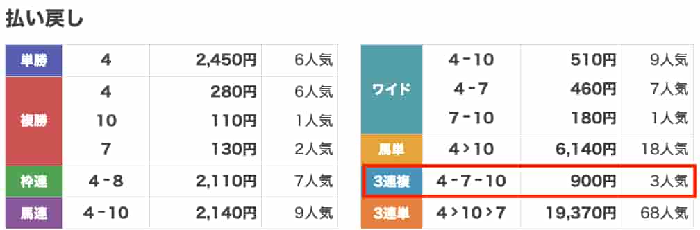 3連複の軸がバッチリで、配当も十分。