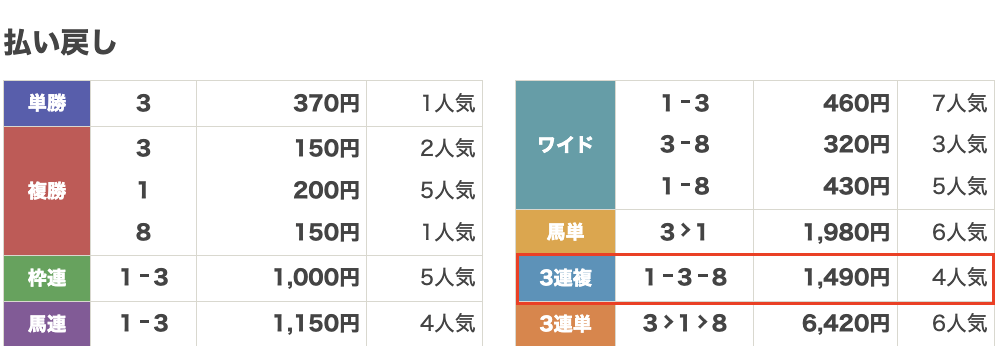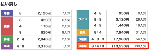 中京8R3連単8-6-590,990円✖️1点500円=454950