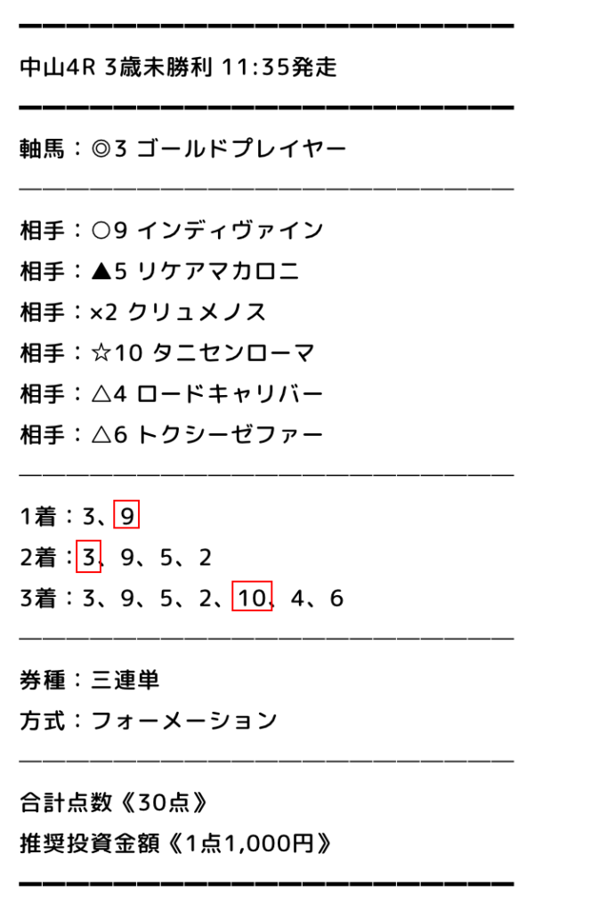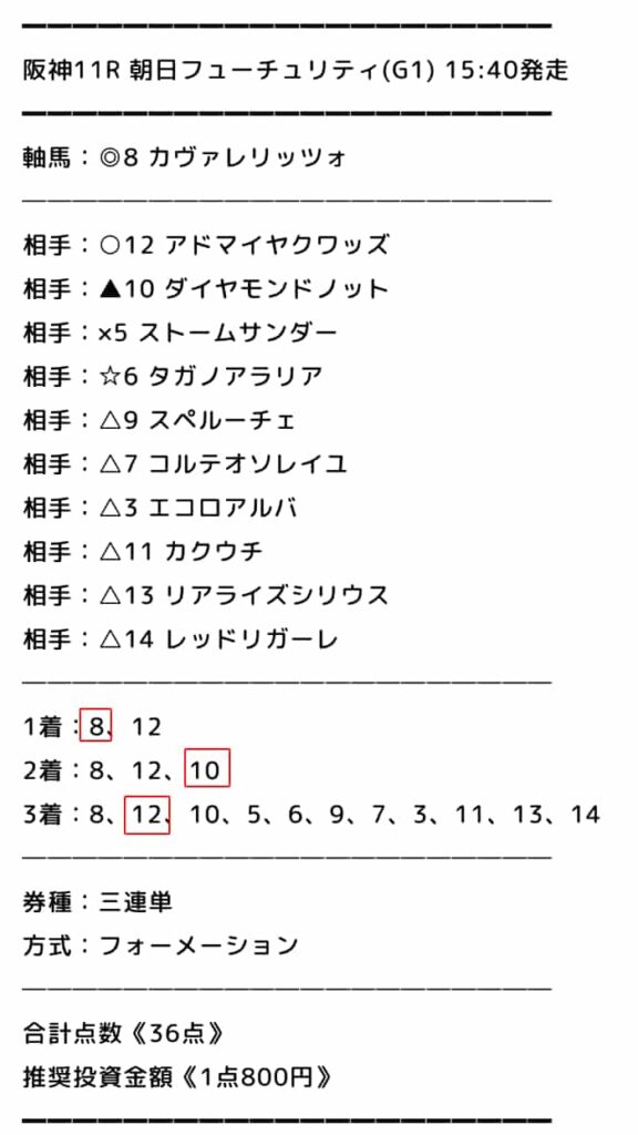 優秀な予想師さんのおかげで、少し多めに点数を買っても回収できたのが嬉しい!次回も楽しみにしてます!