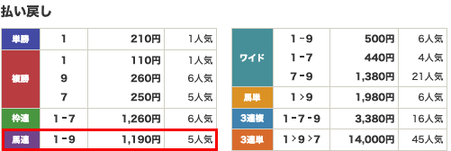 払い戻し1,190円