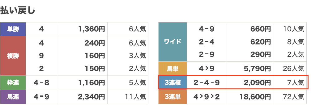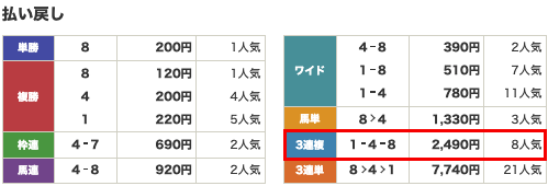 払い戻し2,490円
