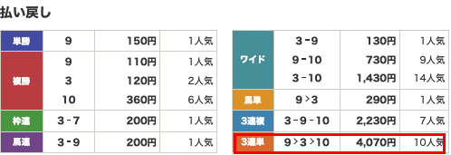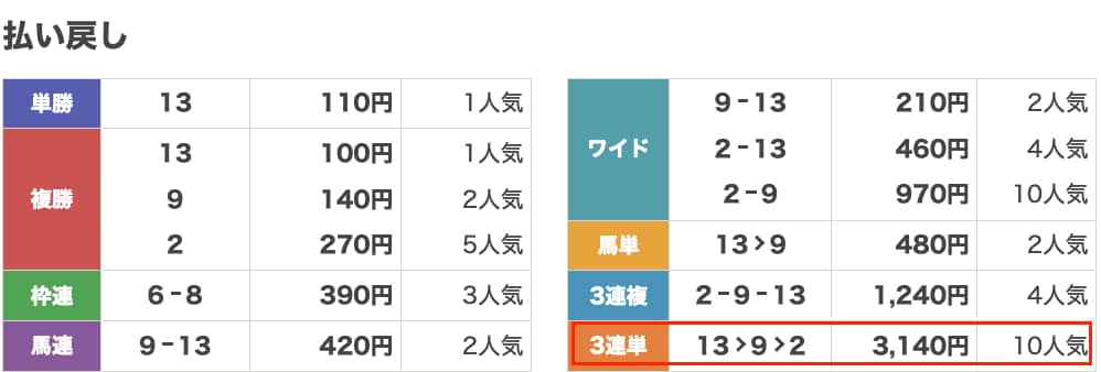 払い戻し3,140円