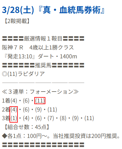 03月28日(土) 阪神7R 「真・血統馬券術」