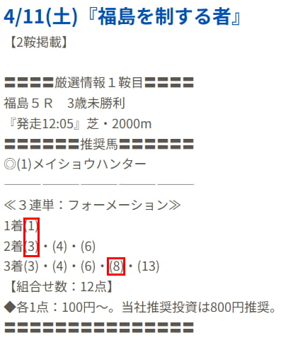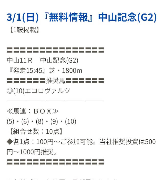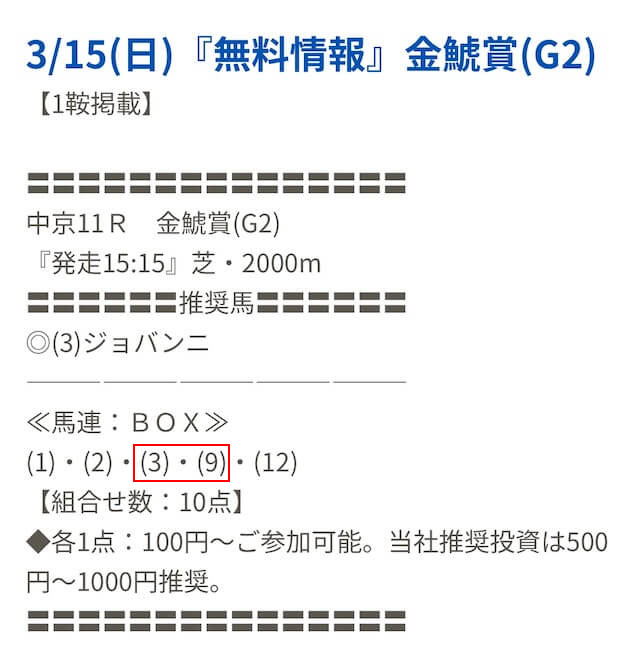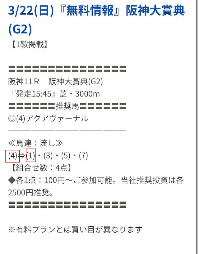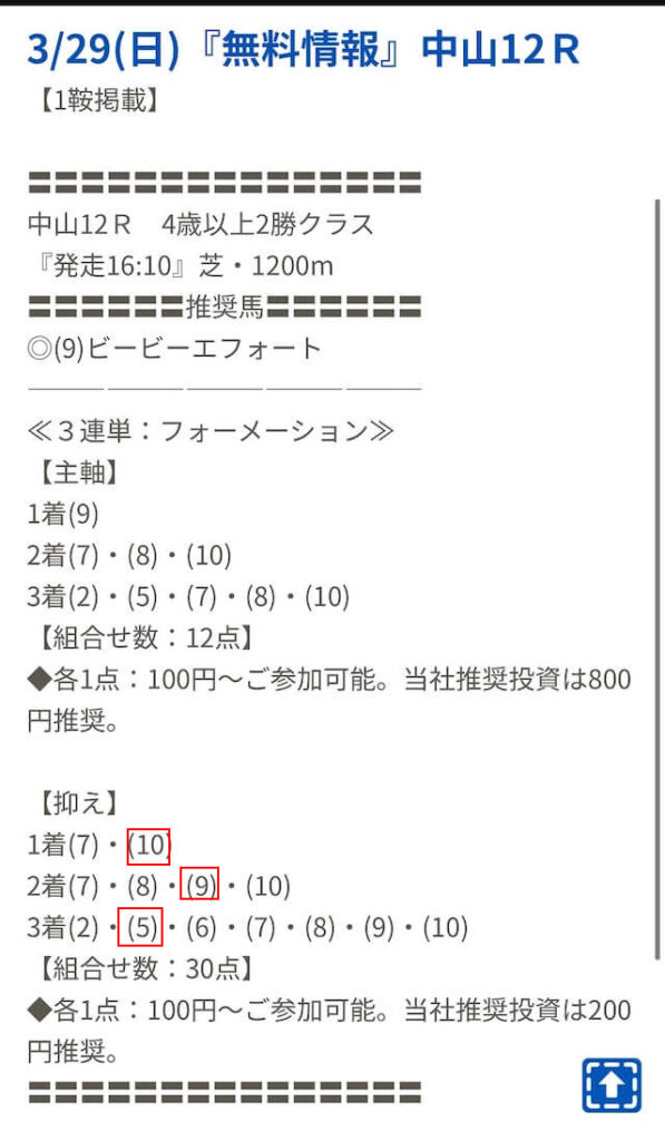 まずは無料予想に参加した結果から詳しく見ていきます。