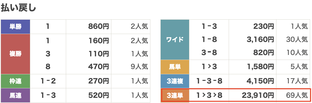 1点1,000円の厚めで勝負しましたが、結果は239,100円の払い戻し。