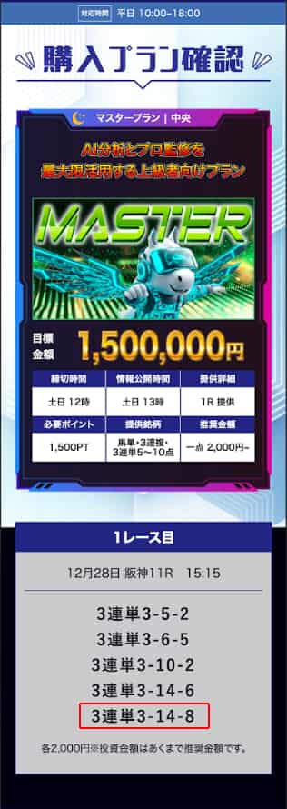 | 参加プラン | マスターナイト |