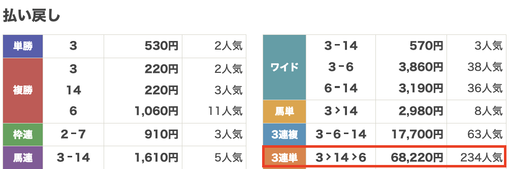 | 払い戻し | 68,220円 |