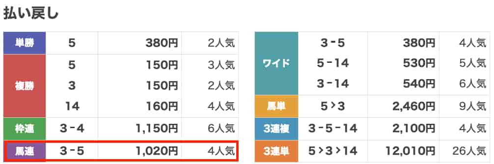 | 券種 | 馬連 |