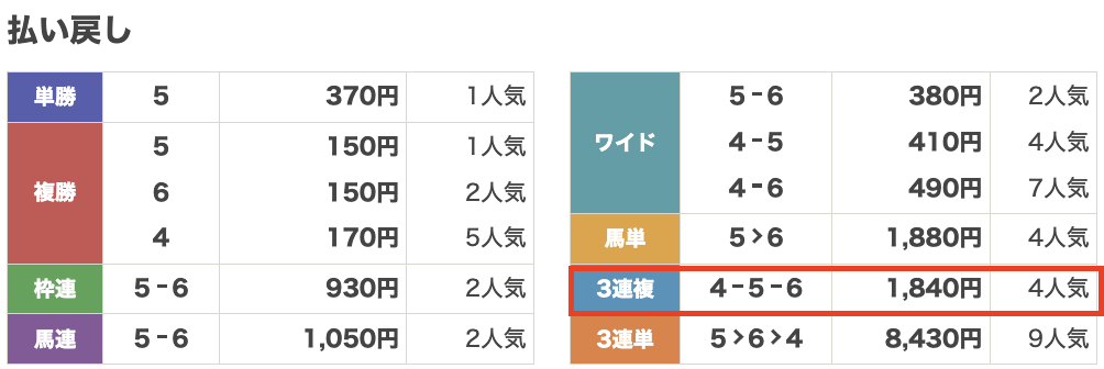 正直あまり期待してなかったのですが、結果は「2-4-8」でバッチリ的中。