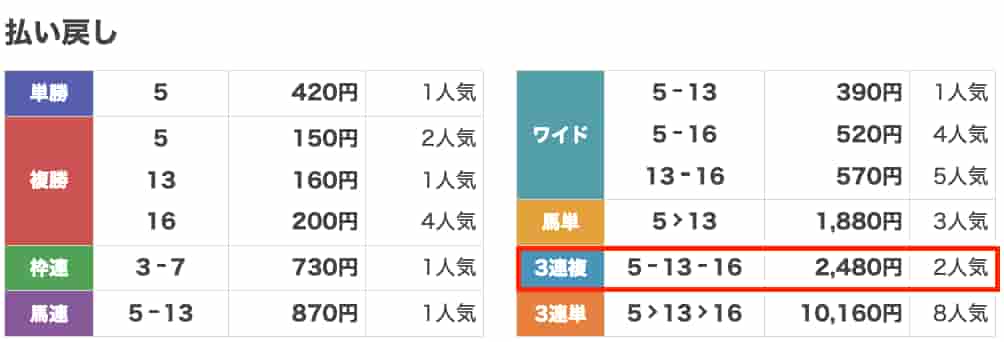 払い戻し2,480円