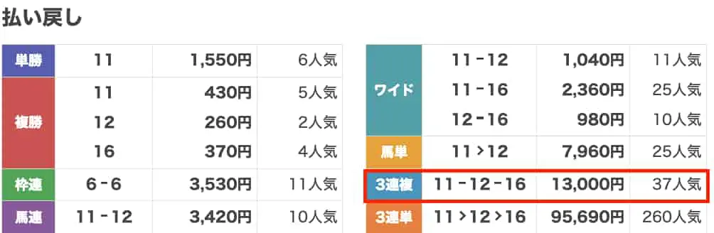 払い戻し:16,700円×1,000円=167,000円獲得!