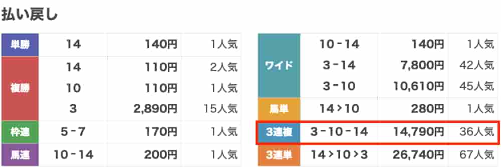 5 - 11 - 14 の組み合わせで16,700円、45人気!