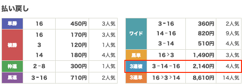 | 払い戻し | 16,700円 |