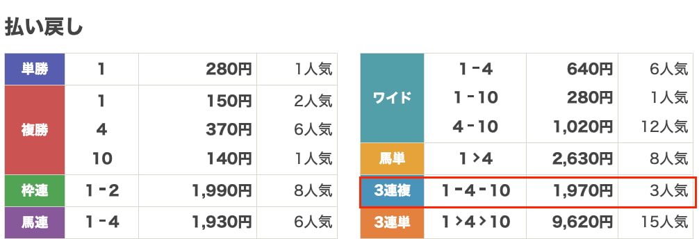 | 払い戻し | 3,080円 |