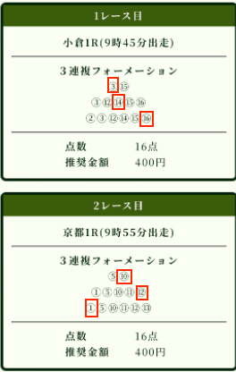 朝一で3鞍中2鞍的中で86,100円獲得!