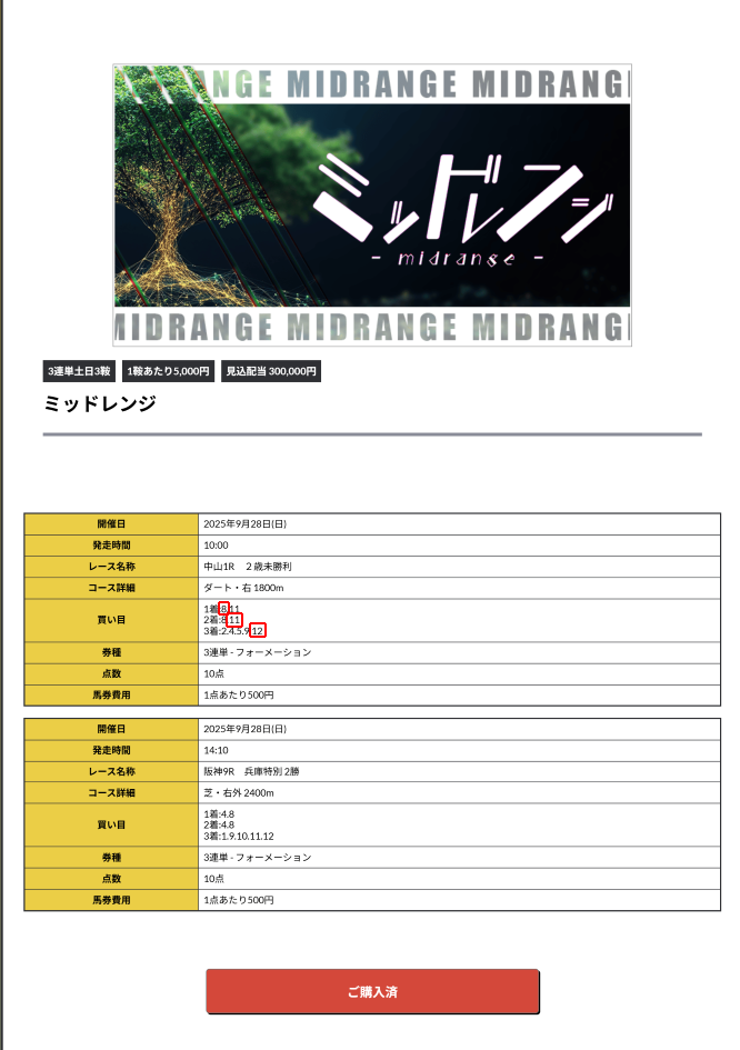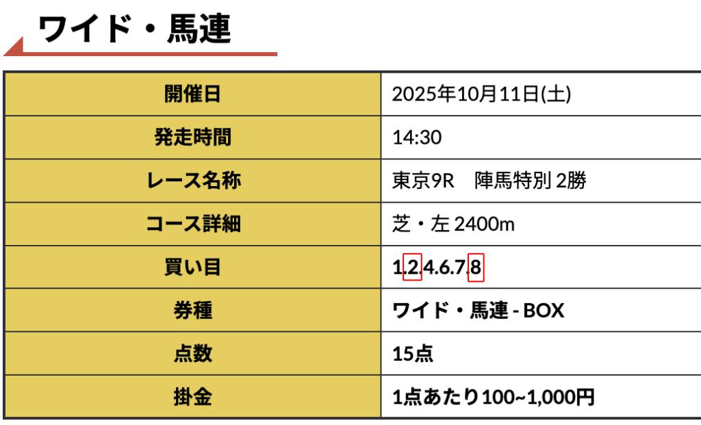 | 馬券代 | 1点500円✖️10点=5,000円 |