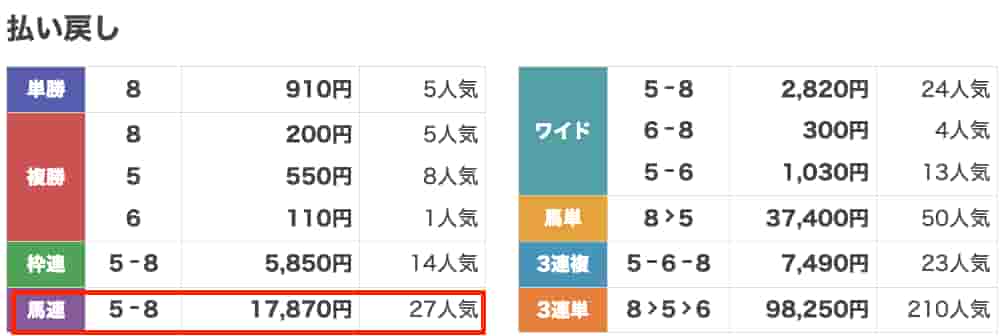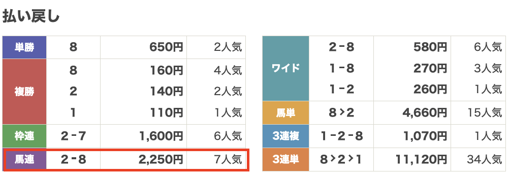 京都11Rで馬連5-8がドンピシャで入ってた。