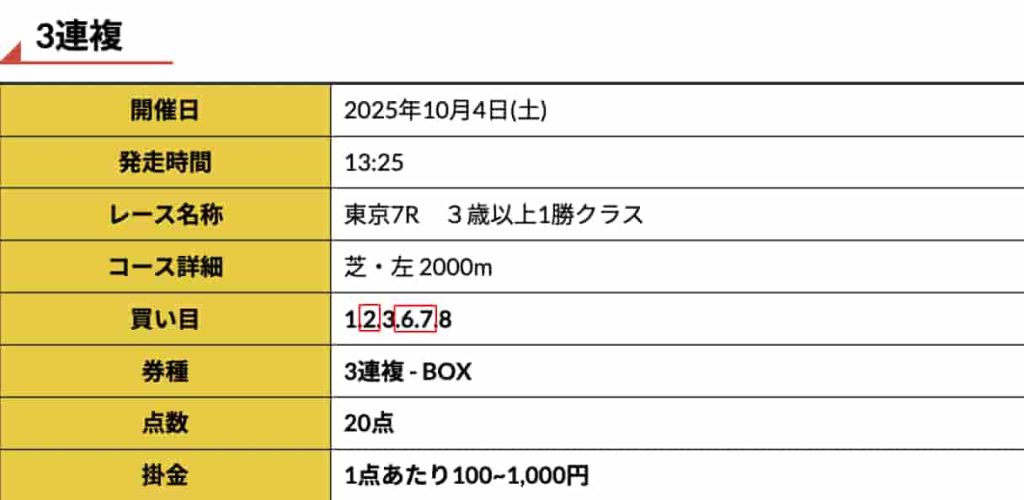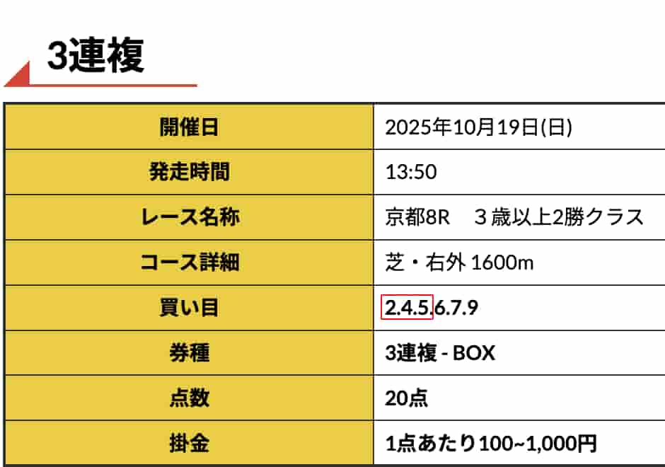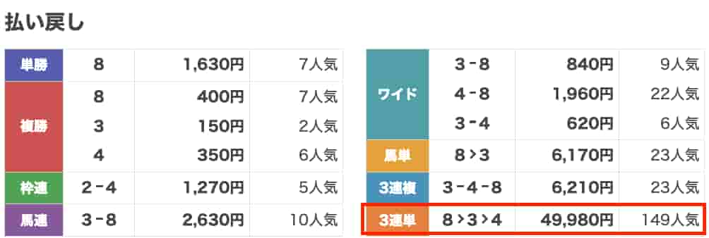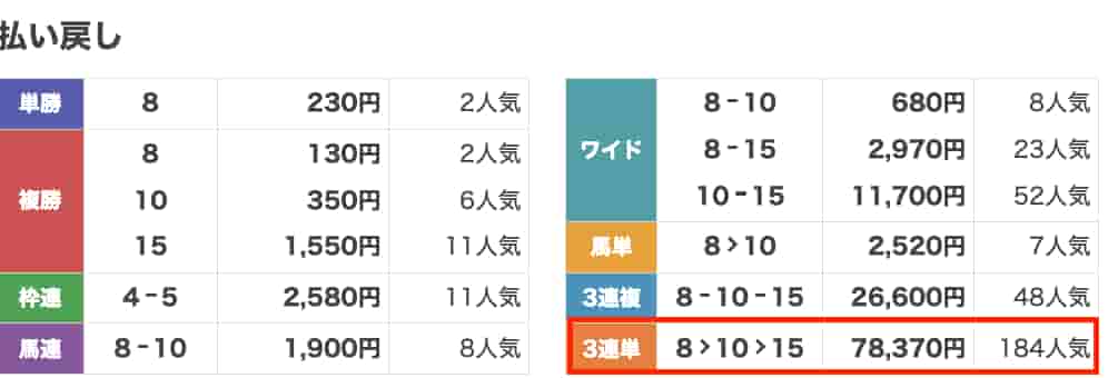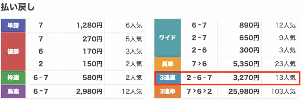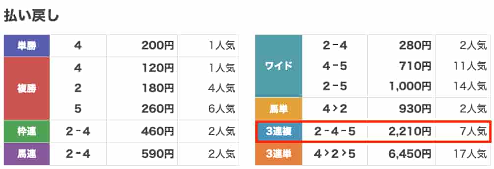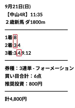 | 馬券代 | 1点800円✖️6点=4,000円 |