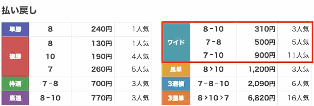 | 払い戻し | 8- 10→310円 7-8→500円 7-10→ 900円 |