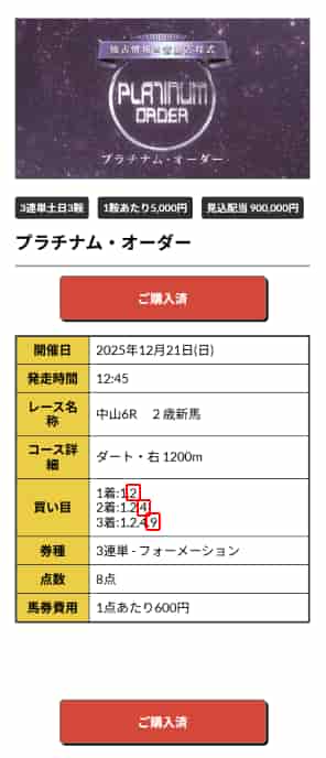 無料情報の精度としては十分すぎる。12/27阪神2R、6頭BOX20点でしっかり82.7倍を回収。1点1,000円投資なら利益は6万円オーバー。派手な万馬券ではないが、無料提供でこの的中率と回収率のバランスは非常に評価できる。有馬記念ウィークの資金作りとして完璧な仕事。