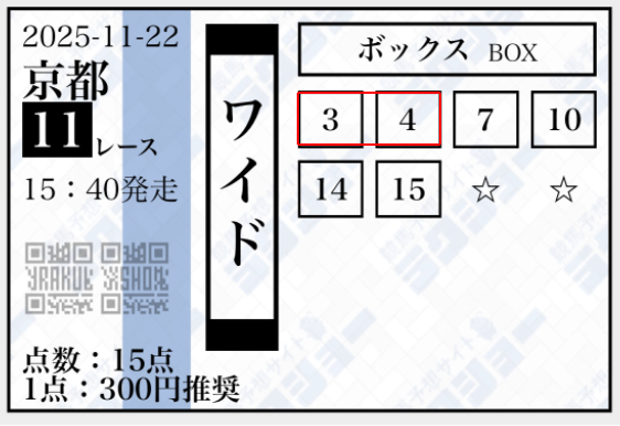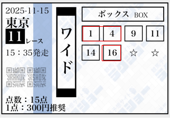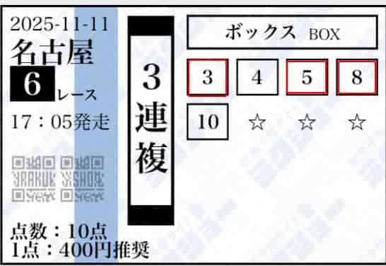 名古屋7RのワイドBOX、情報どおり4-6・1-6・1-4で見事的中。
