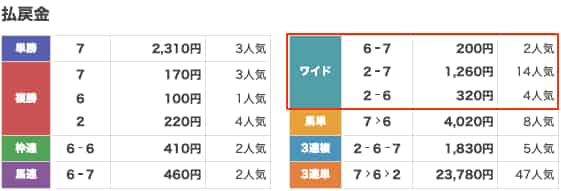 ワイド【2-4】【3-4】【2-3】の3点的中!