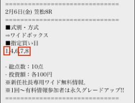 新潟8RでワイドBOX的中!10,000円投資して13,080円戻り。無料でこれだけ回収率が出るなら、有料予想はどうなるのか気になってきました…。少額でもプラスになったので、次は本格的にチャレンジしてみようかなと思います。」