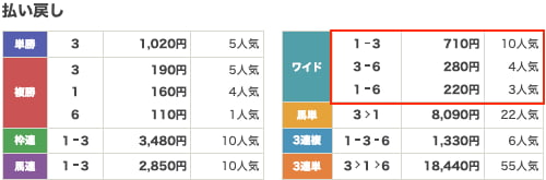| 払い戻し | 1-3→710円 3-6→280円 1-6→220円 |