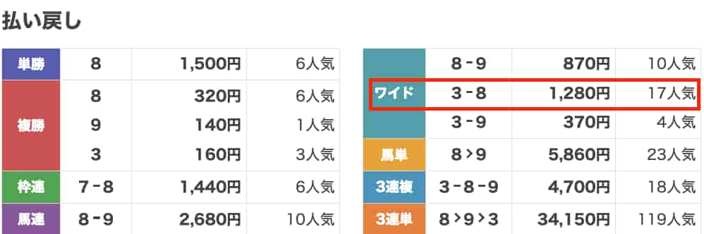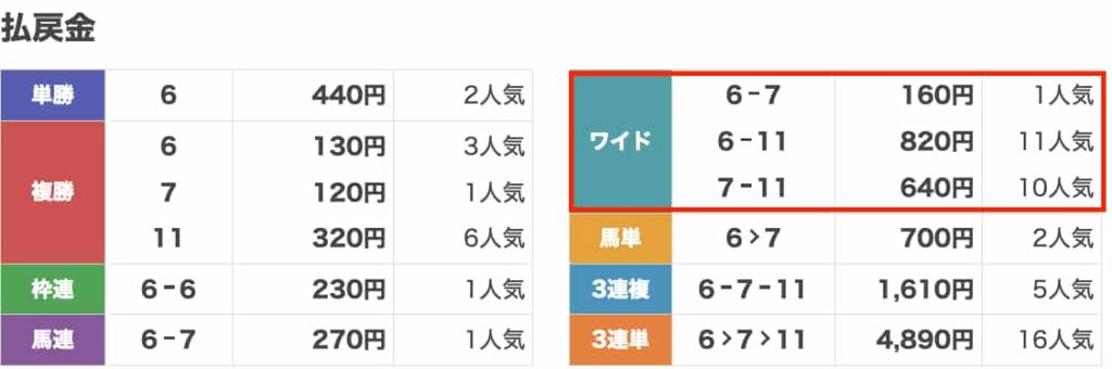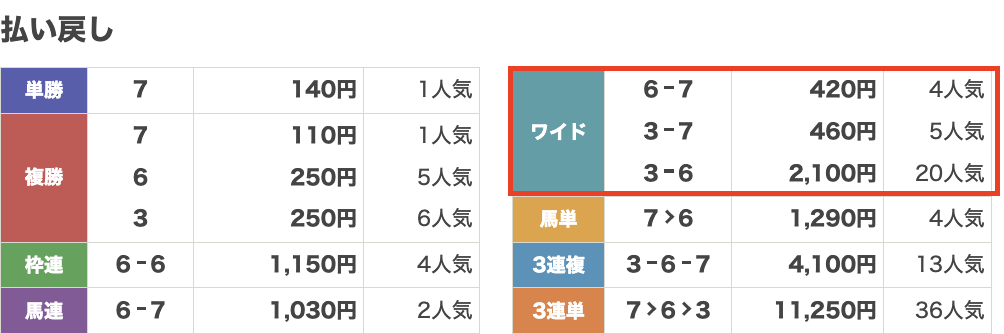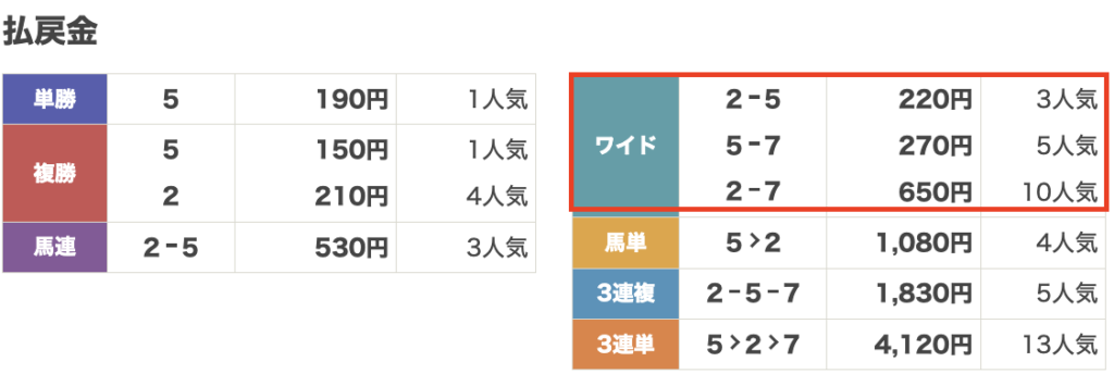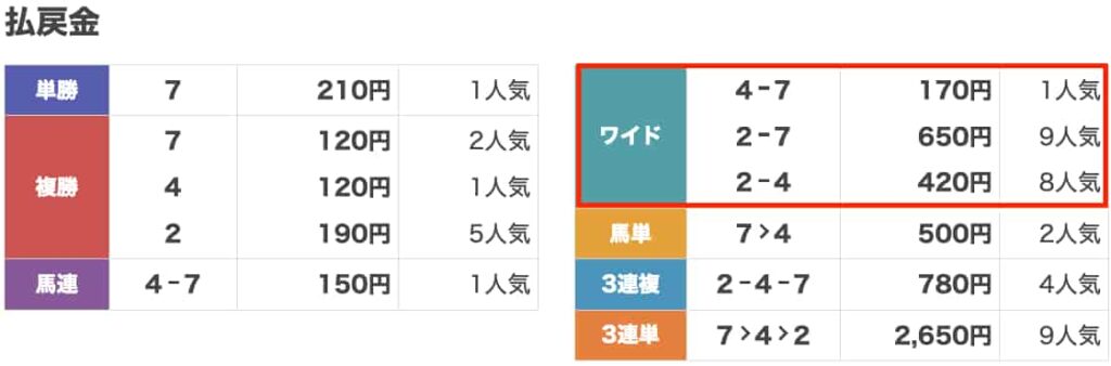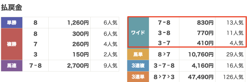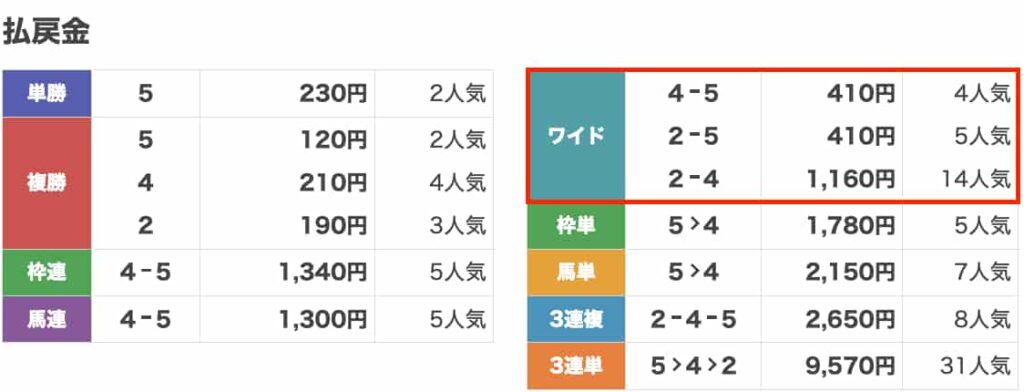ワイド【2-4】【3-4】【2-3】の3点的中!