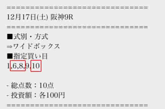 買い目は【2,3,4,5,9】の10点、1点1000円ずつで合計1万円。