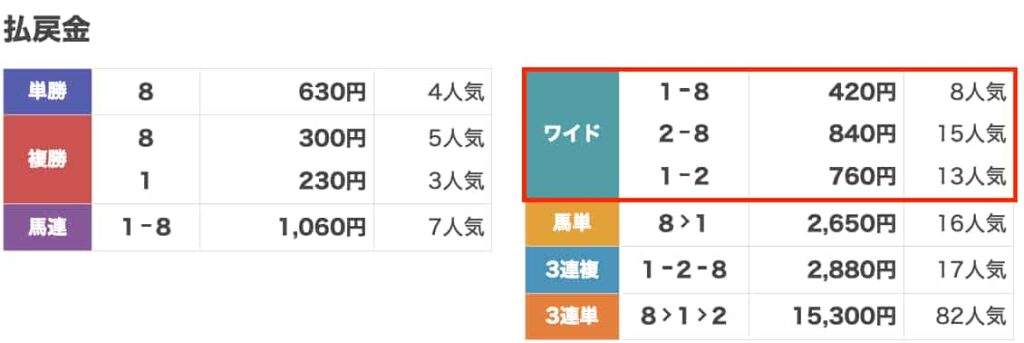 | 払い戻し | 1–8→420円 2-8→840円 1-2→760円 |