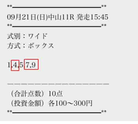 | 馬券代 | 1点300円✖️10点→3,000円 |