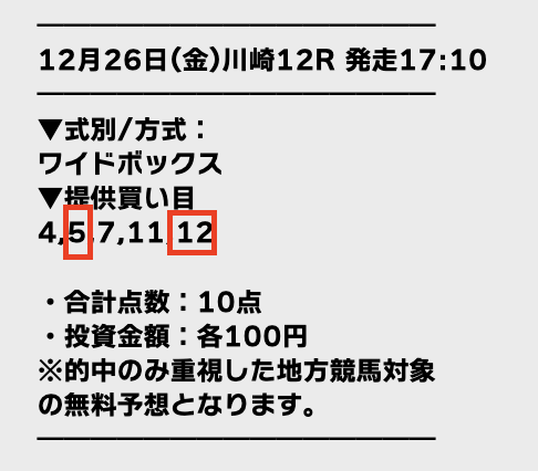 | 対象レース | 川崎12R |