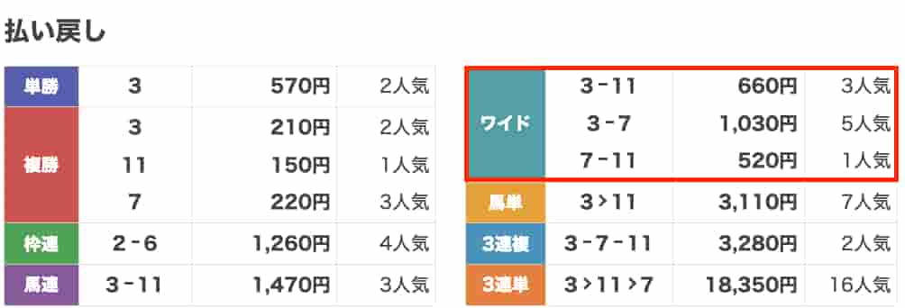 払い戻し金額 | 3-7→1,030円 7-11→520円 | 3-11→660円