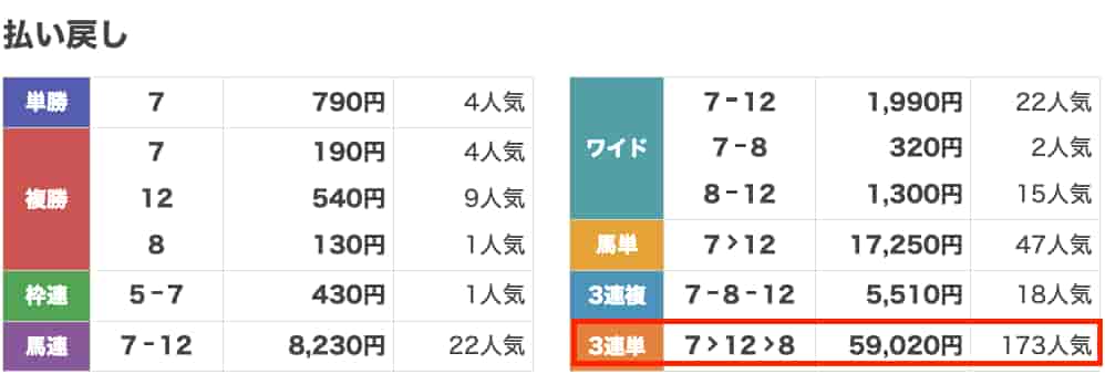 馬券代 | 1点1000円✖️12点=12,000円 |