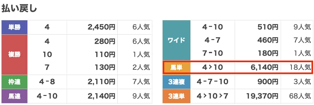 払い戻し6,140円