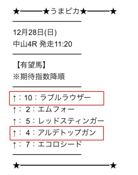 うまピカ買い目画像