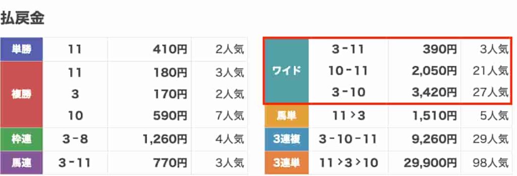 3-11、10-11、3-10のワイドで計58,600円回収。