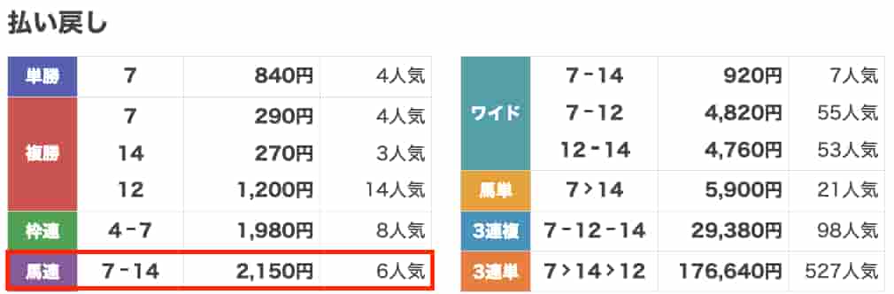 | 払い戻し金額 | 11-12→430円 2-11→810円 2-12→ 760円 |